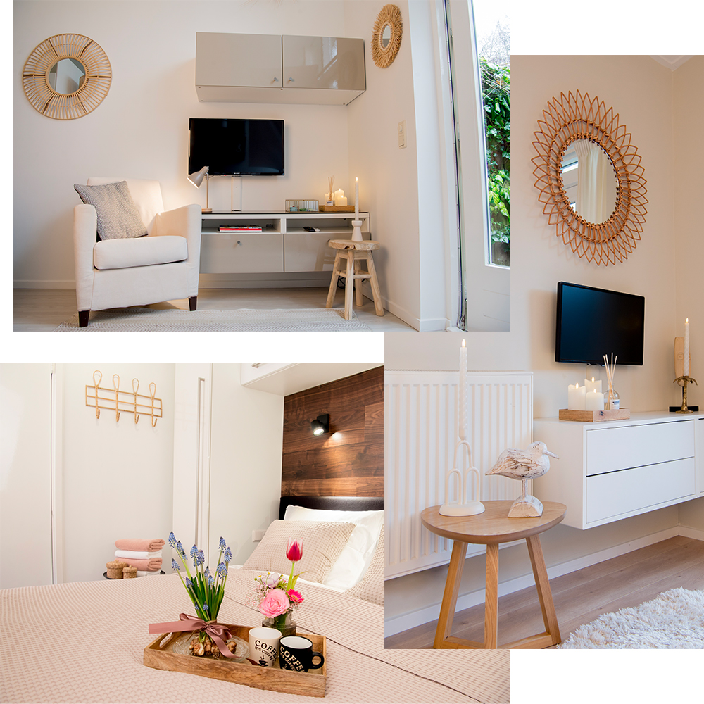 Beiden Appartments von Ferienhäuser Bergen NH sind fast identisch eingeteilt und modern, hell und praktisch eingerichtet. Eine gemütliche Sitzecke mit Couch und Fernseher und einen modernen Kochinsel mit induktion-kochplatte und sehr komplette Einrichtung. Beiden Appartments von Ferienhäuser Bergen NH verfügen über ein abgetrenntes Schlafteil mit zwei kwalitäts Boxsprings und ein geräumigen Badezimmer mit Regendusche und luxe Sanitär.