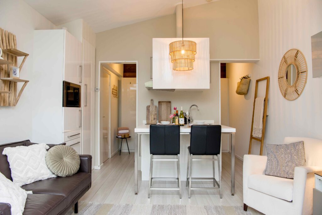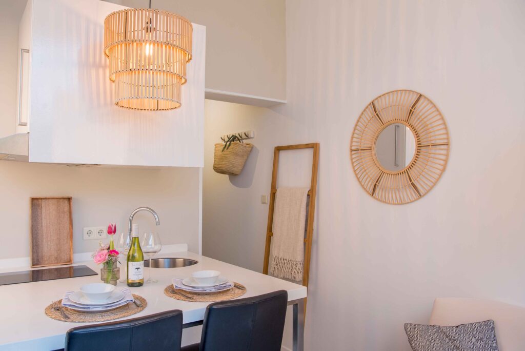 Der Wohnbereich ist komfortabel eingerichtet und im herzen befindet sich ein modernen und gut ausgestatteten Kochinsel. Die hohe Decke schaft ein Gefühl von Raum und die grossen Fenster sorgen für einen köstlichen Licht. Wenn Sie die beiden Flügeltüre öffnen vereinigen Sie das Wohnzimmer mit Ihren sonnigen abgeschlossenen Privatterrasse.